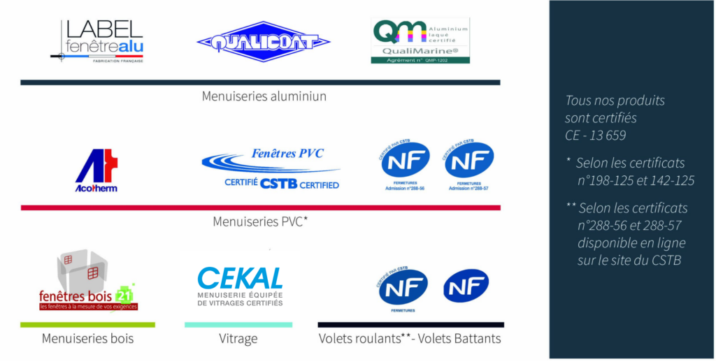 Tous nos produits bénéficient de la norme CE. * Selon les certificats n°198-125 et 142-125 ** Selon les certificats n°288-56 et 288-57 disponibles en ligne sur le site du CSTB.